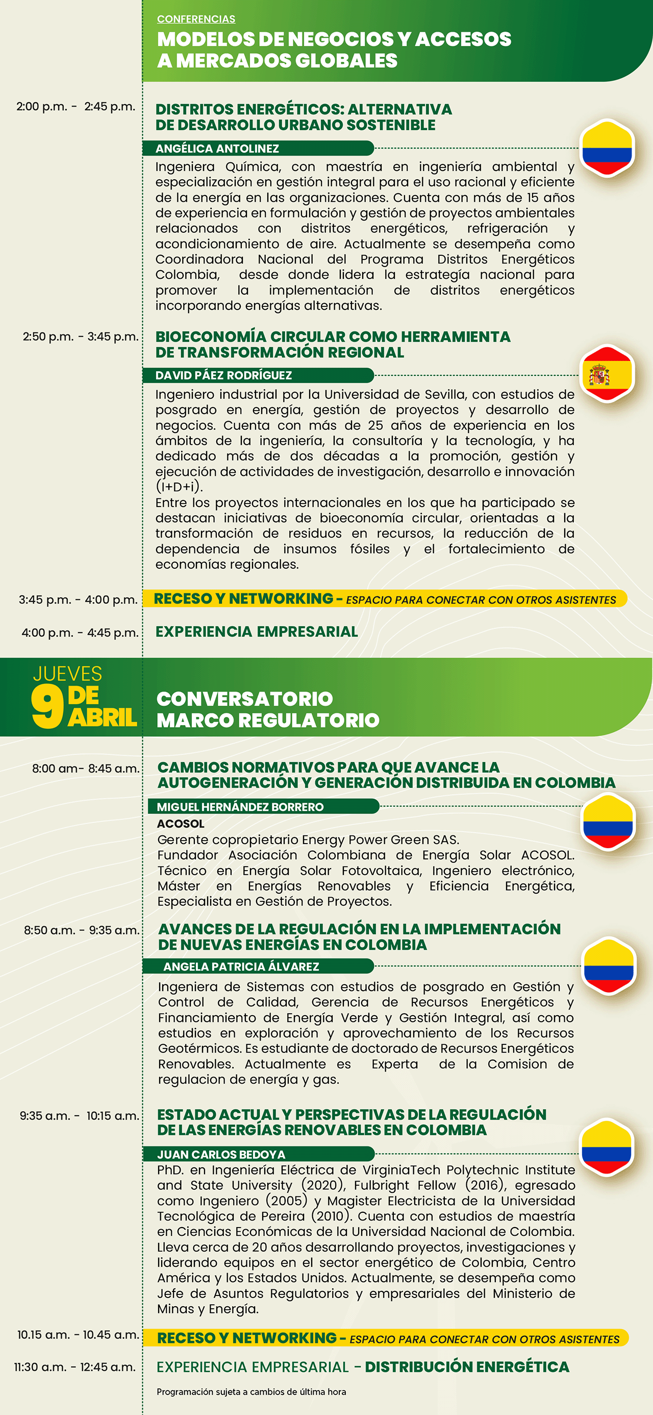 Es un evento académico y comercial de energía solar, biomasa, energía eólica y movilidad eléctrica que busca promover el desarrollo y la implementación de las energías renovables para que Colombia sea un referente en la sostenibilidad energética.